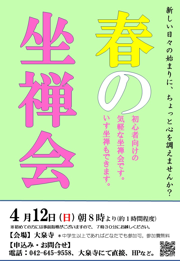 法臺山 大泉寺 | 八王子 曹洞宗 坐禅会 > お知らせ > おしらせ > 春の坐禅会、あります。