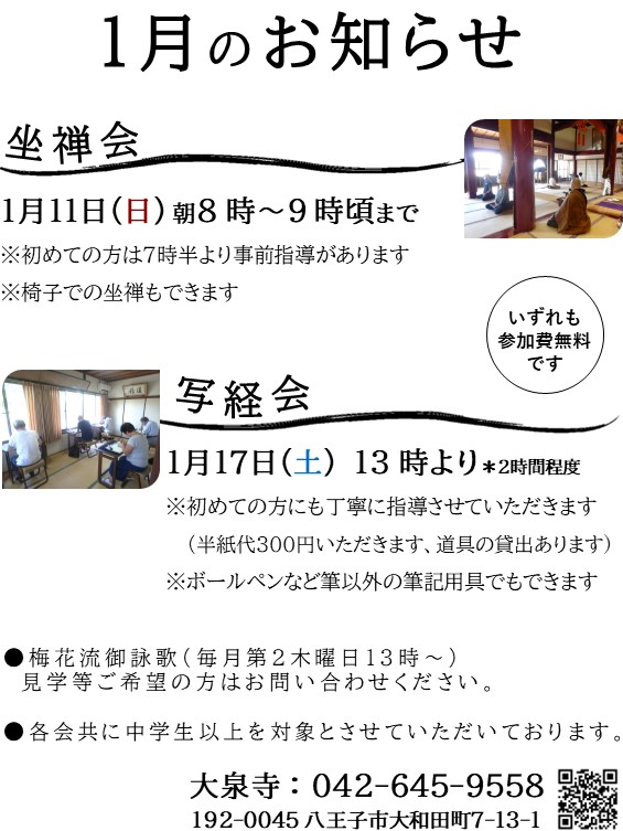 (半紙代300円いただきます、道具の貸出あります、椅子と机で行います)